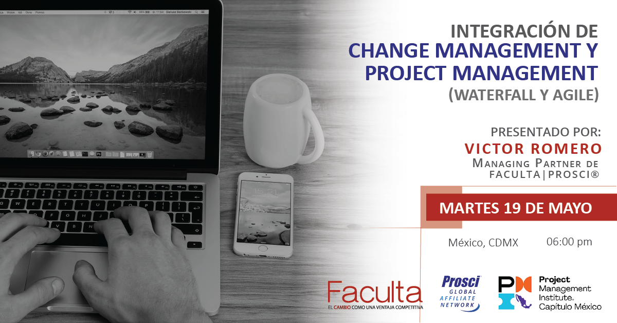En esta sesión interactiva virtual conocerá las mejores prácticas y el valor en los resultados de negocio de la integración de Change Management y Project Management (Waterfall & Agile) con base en la investigación mundial de PROSCI.